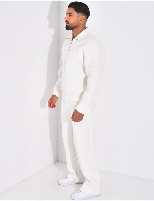 ENSEMBLE PANTALON ET SWEAT À COL ZIPPÉ - ECRU